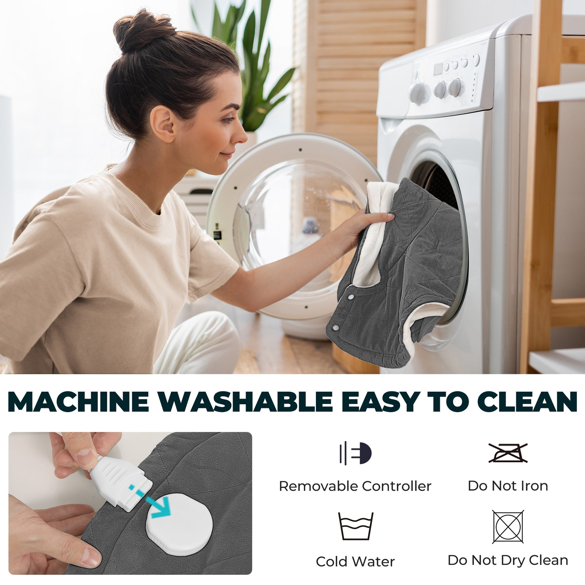 - Machine Washable: After detaching the controller, the flannel pad is machine washable, maintaining hygienic and comfortable use while preserving its softness and beauty for years.