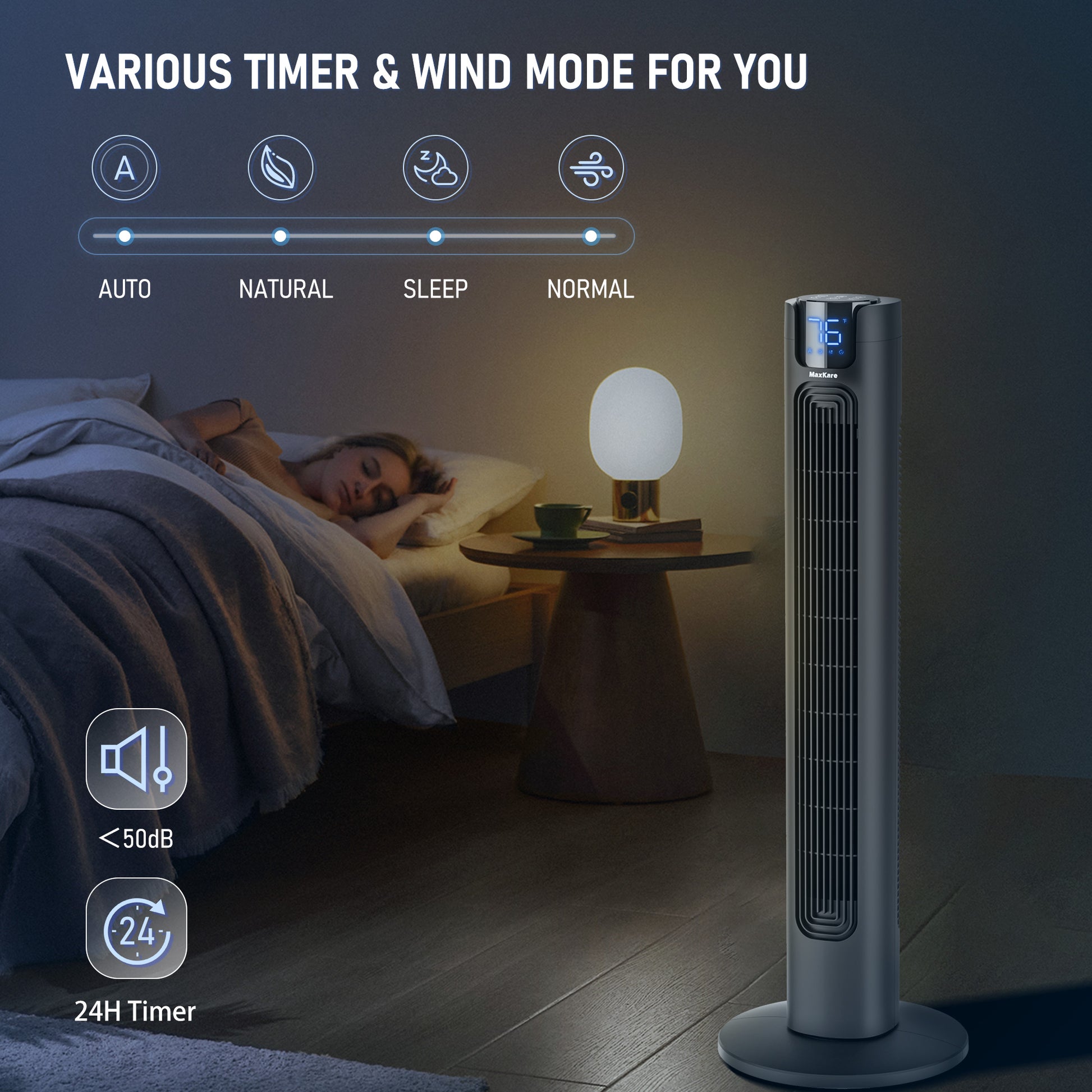MaxKare 36" Tower Fan with 4 Modes 3 Speeds 24H Timers, 75° Oscillating, LED Display & Remote Controller, 50dB Quiet Fan, Black