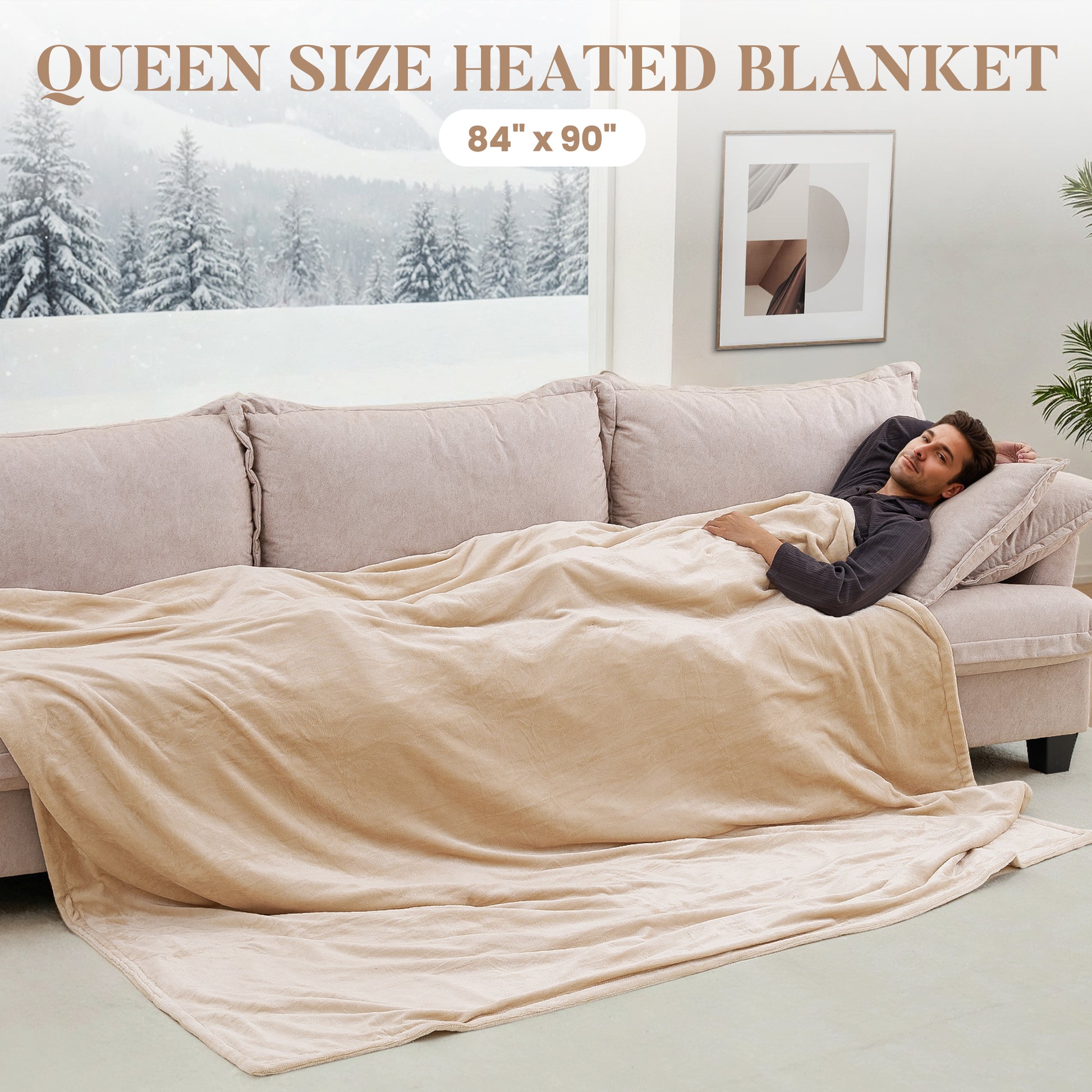 Cozy up with MaxKare queen-size heated blanket—spacious for two, no cold spots! Dual controllers let couples pick their own warmth. Max 10-hour timer keeps you safe & saves energy on cold winter nights. Soft, non-shedding flannel, pet-friendly. Machine-washable, great for beds/couches—ideal gift for the holiday!