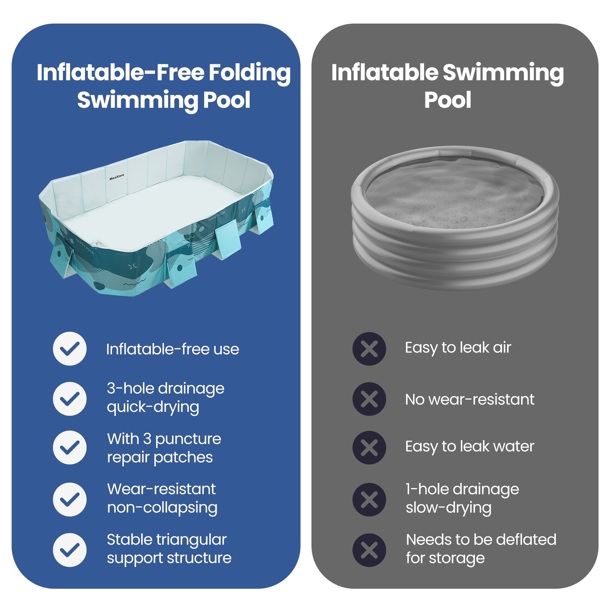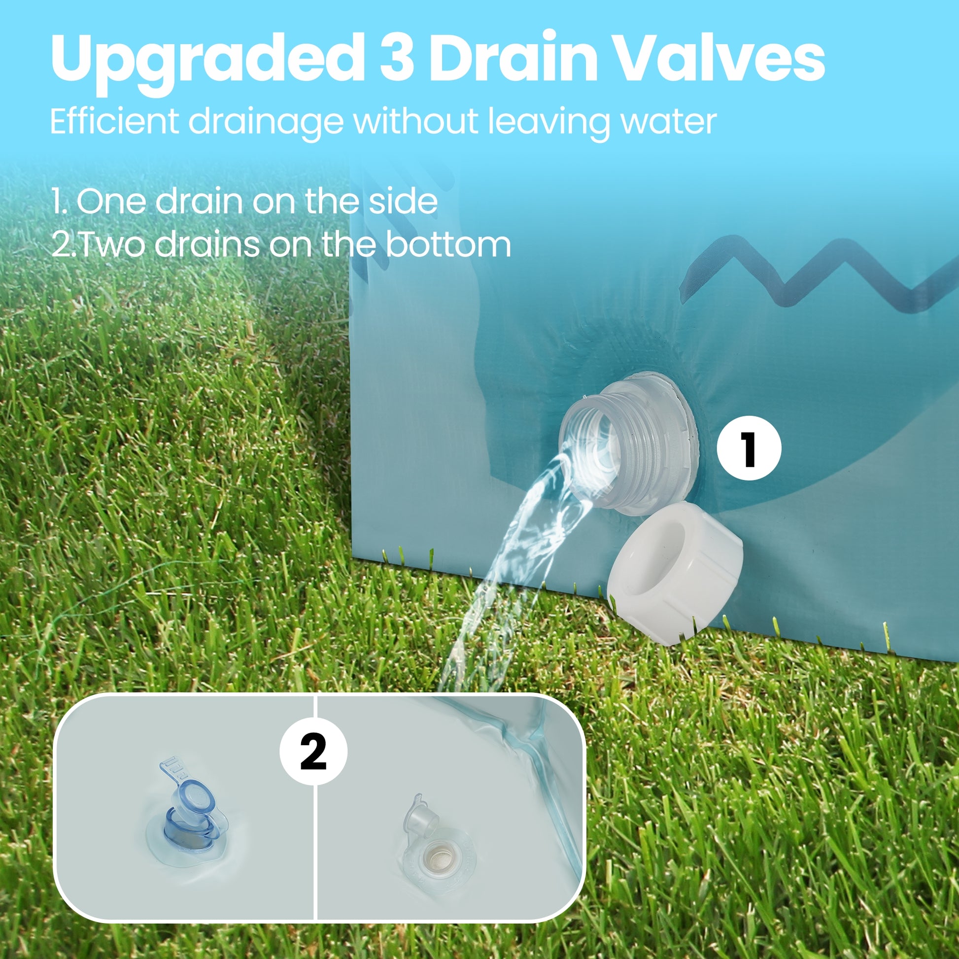 MaxKare's extra-large foldable dog pool lets your pets and children enjoy hours of fun. Made of durable PVC, this pool is a playground for endless fun without the worry of collapse. Its non-slip bottom provides a safe haven for water activities. The triple drain valve makes cleaning a breeze, ensuring everyone can enjoy the fun. Whether used as a pet bathtub, kiddie pool, or sandbox, this versatile pool provides hours of water fun for the whole family.