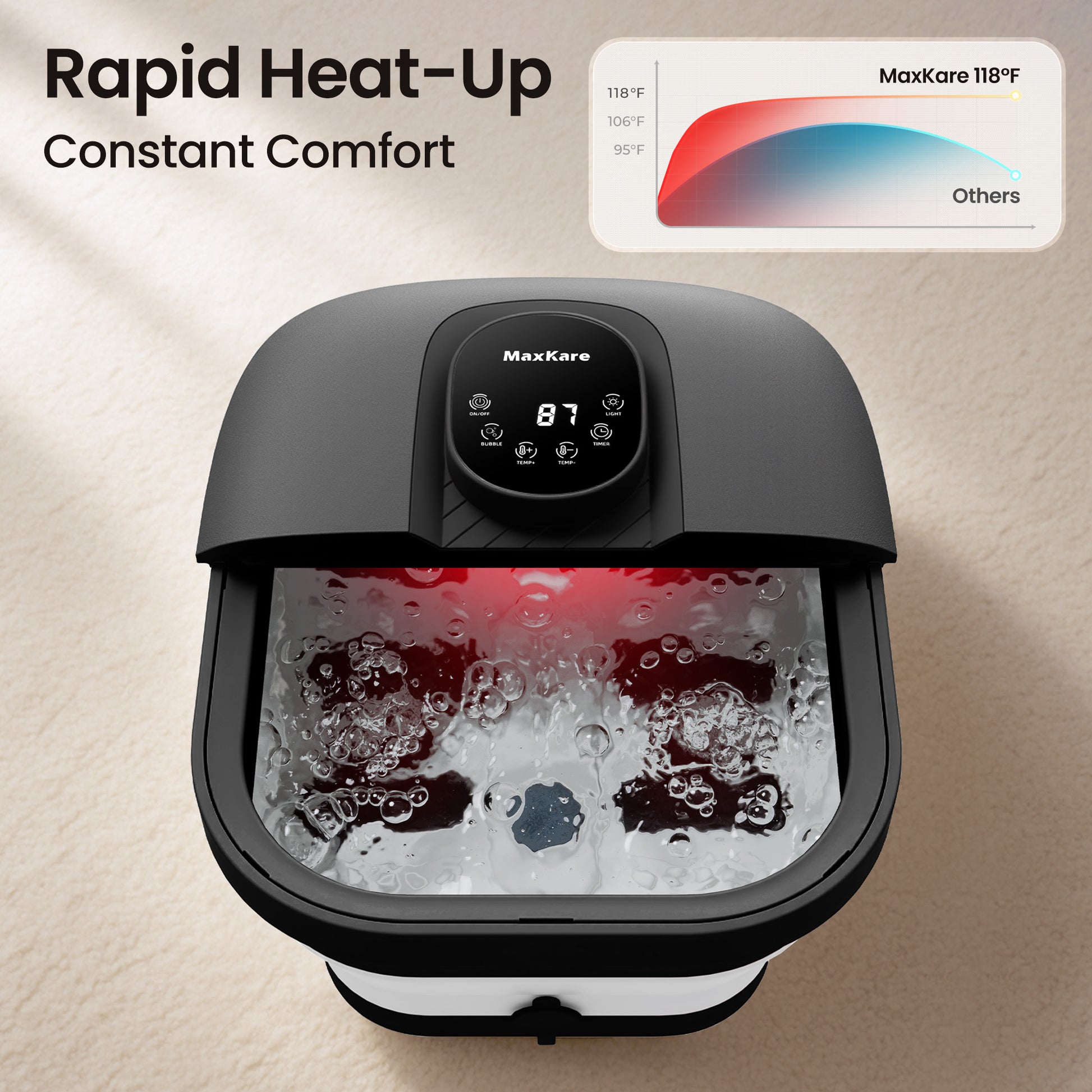 MaxKare Foot Spa Bath Massager with Heat, Bubbles, Vibration, Collapsible Design Digital Display, Temperature & Time Control, Soothe and Comfort Feet