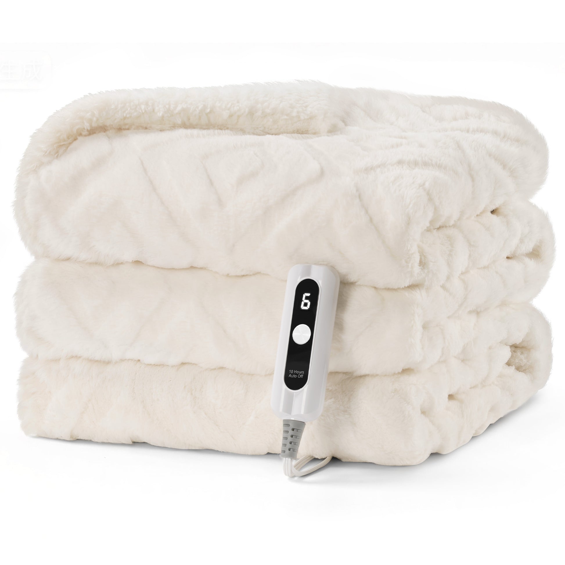 MaxKare Electric Heated Blanket with Faux Fur & Shu Velvet, 6 Heating Levels, 10H Auto off, ETL Certified, White