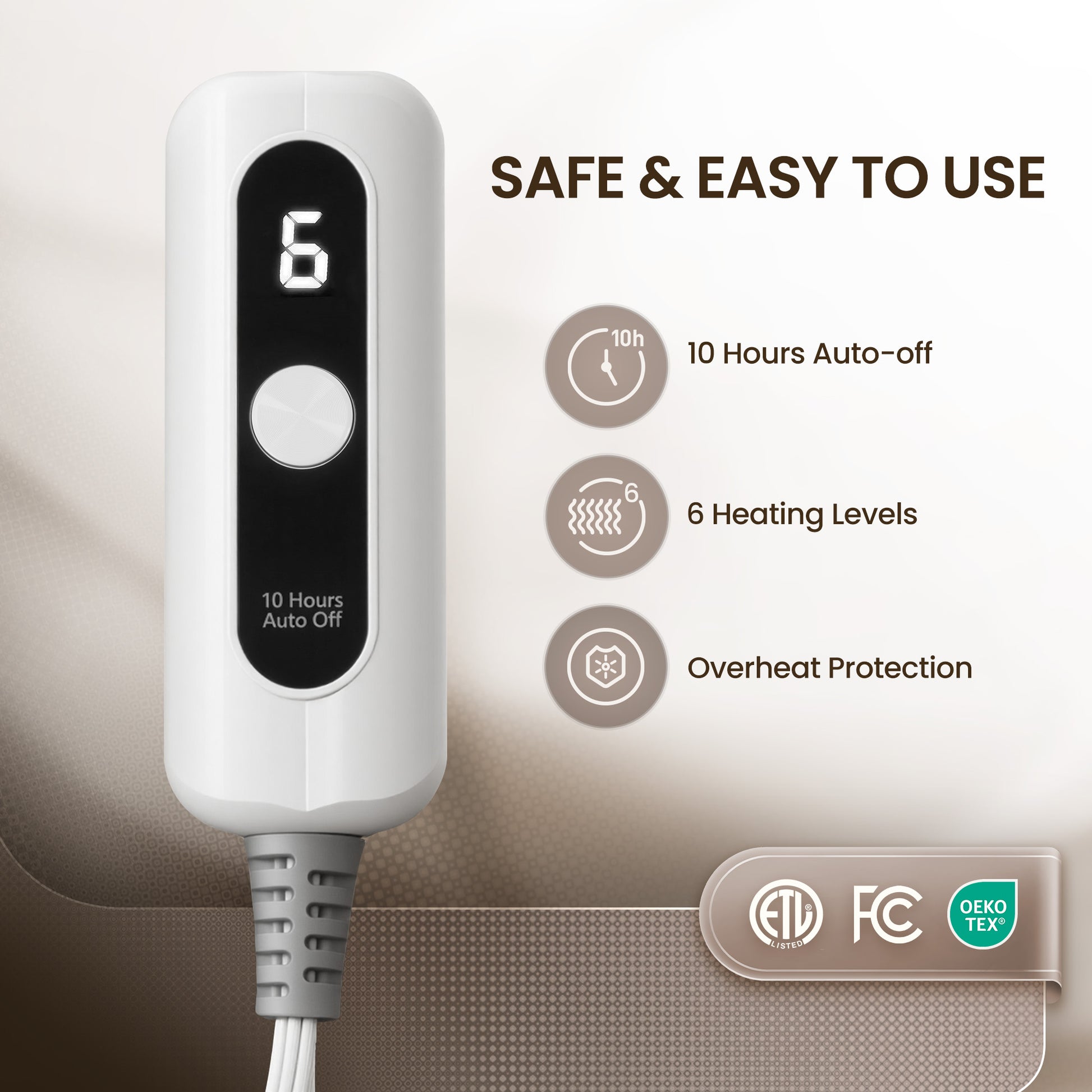 Safety & Environmentally Friendly Certifications – Triple certified: ETL, FCC, and Oeko-Tex® Standard 100 with overheat protection for worry-free use.