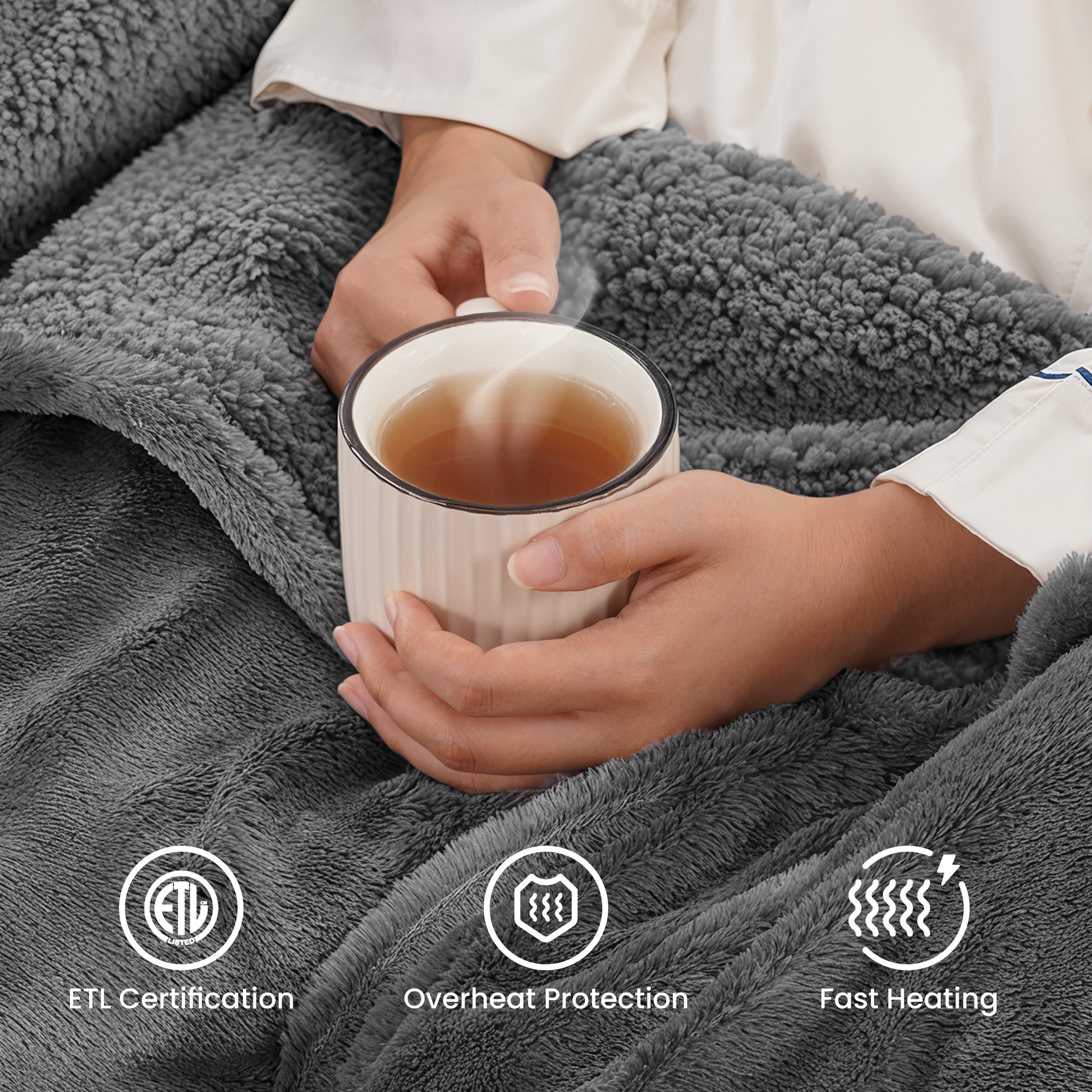【Warm & Safe】60" x 70" large throw blanket distributes heat to keep you comfortable whether you're in bed or on the couch. Overheat protection ensures a safer user experience, and with a rated voltage of 110V, the heated blanket can be directly connected to household power.