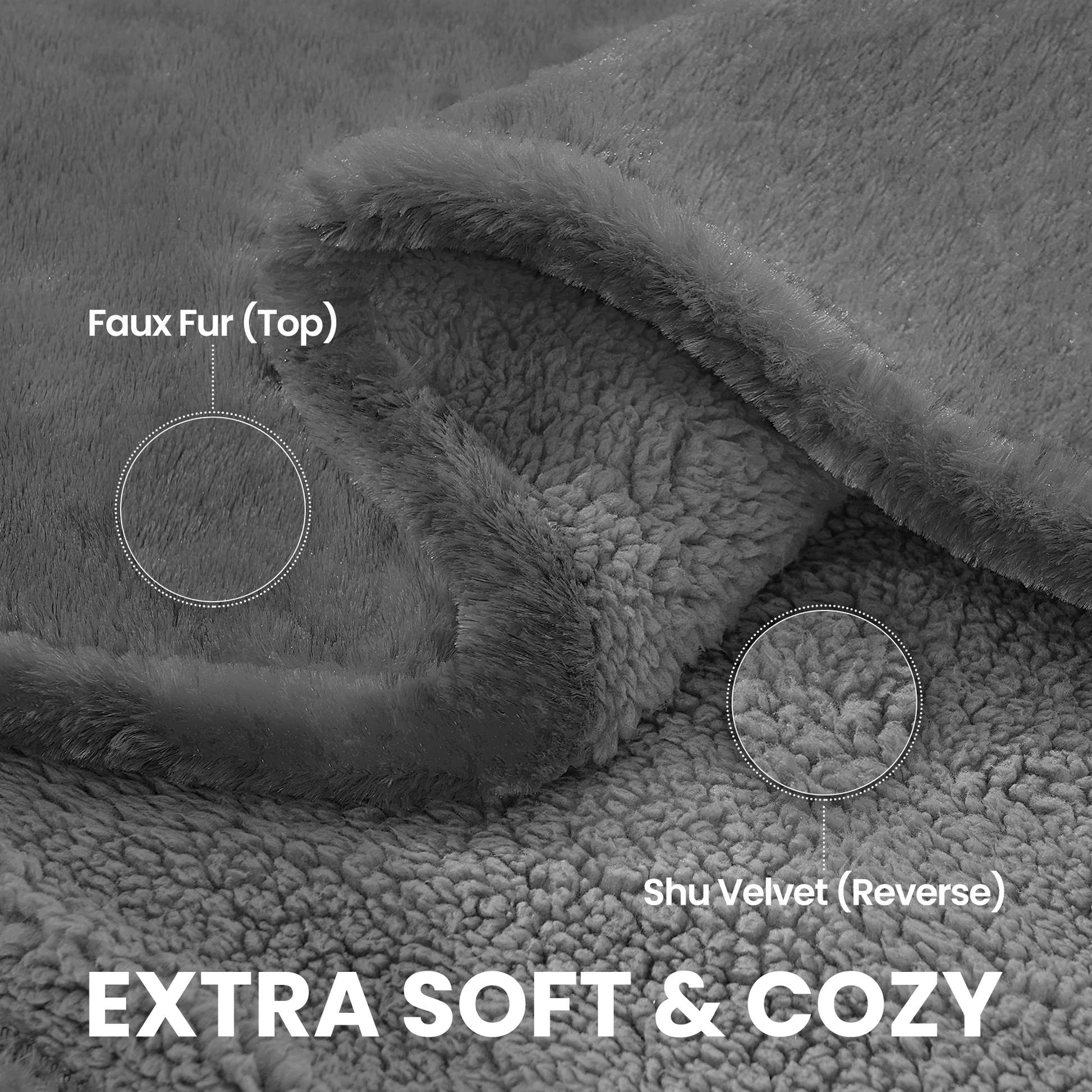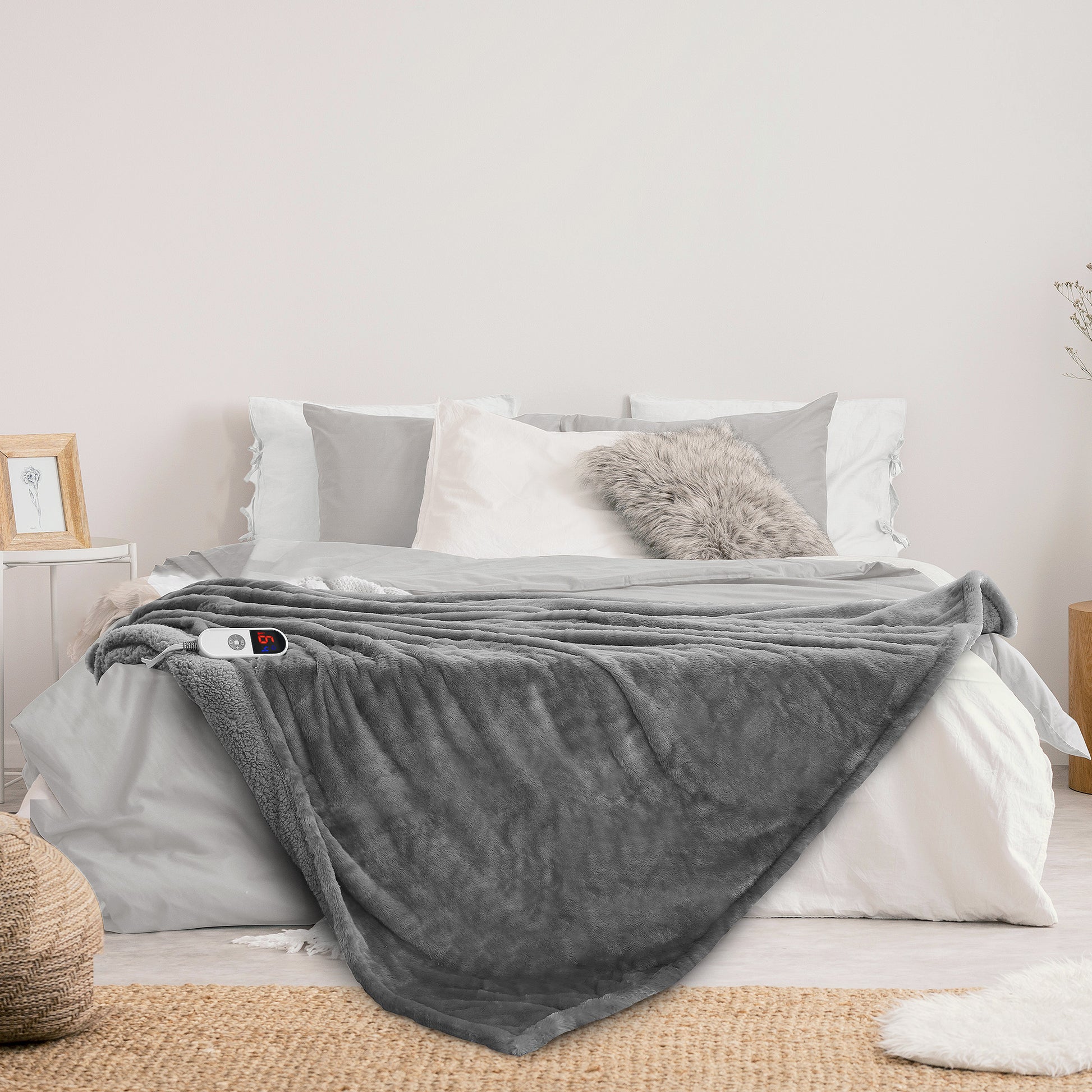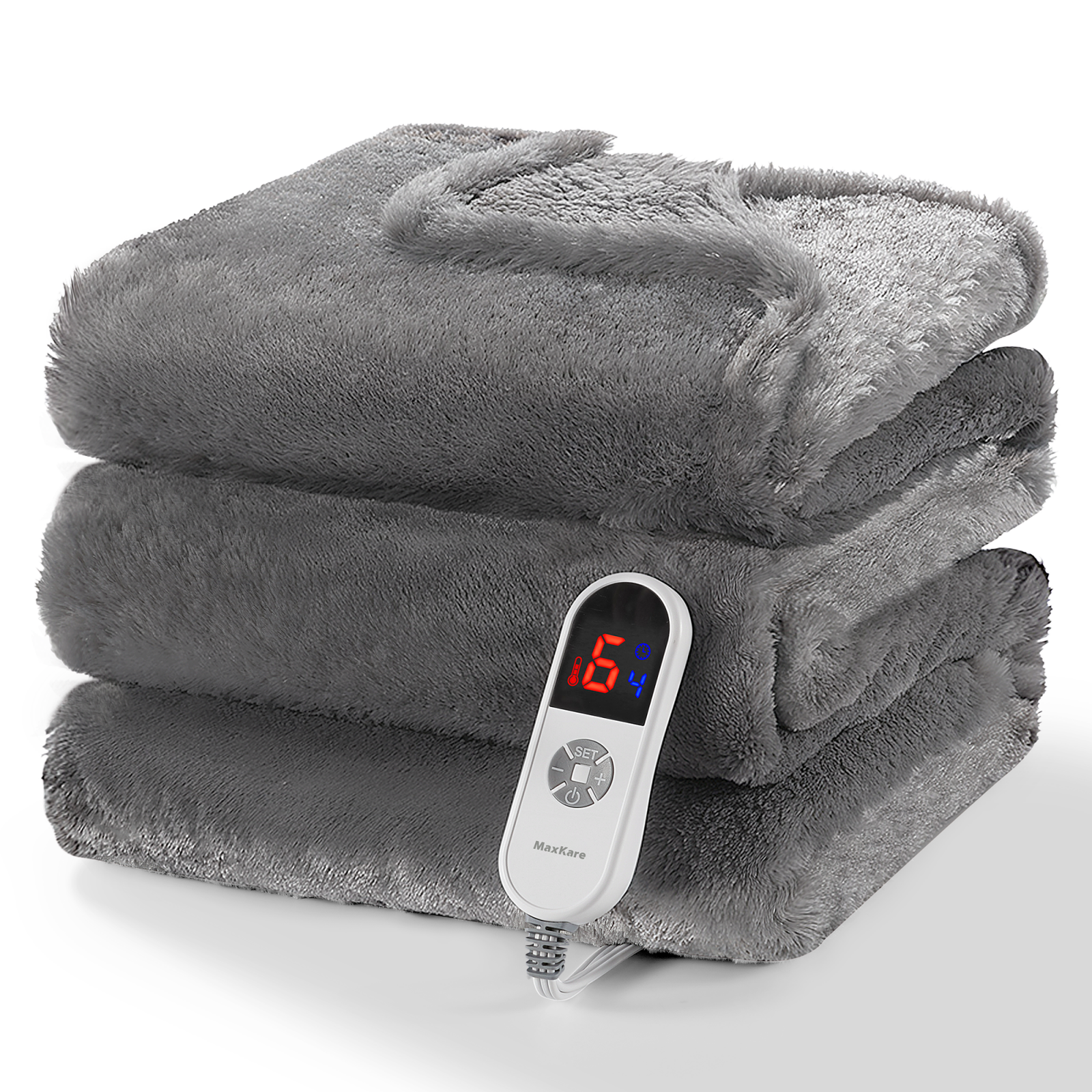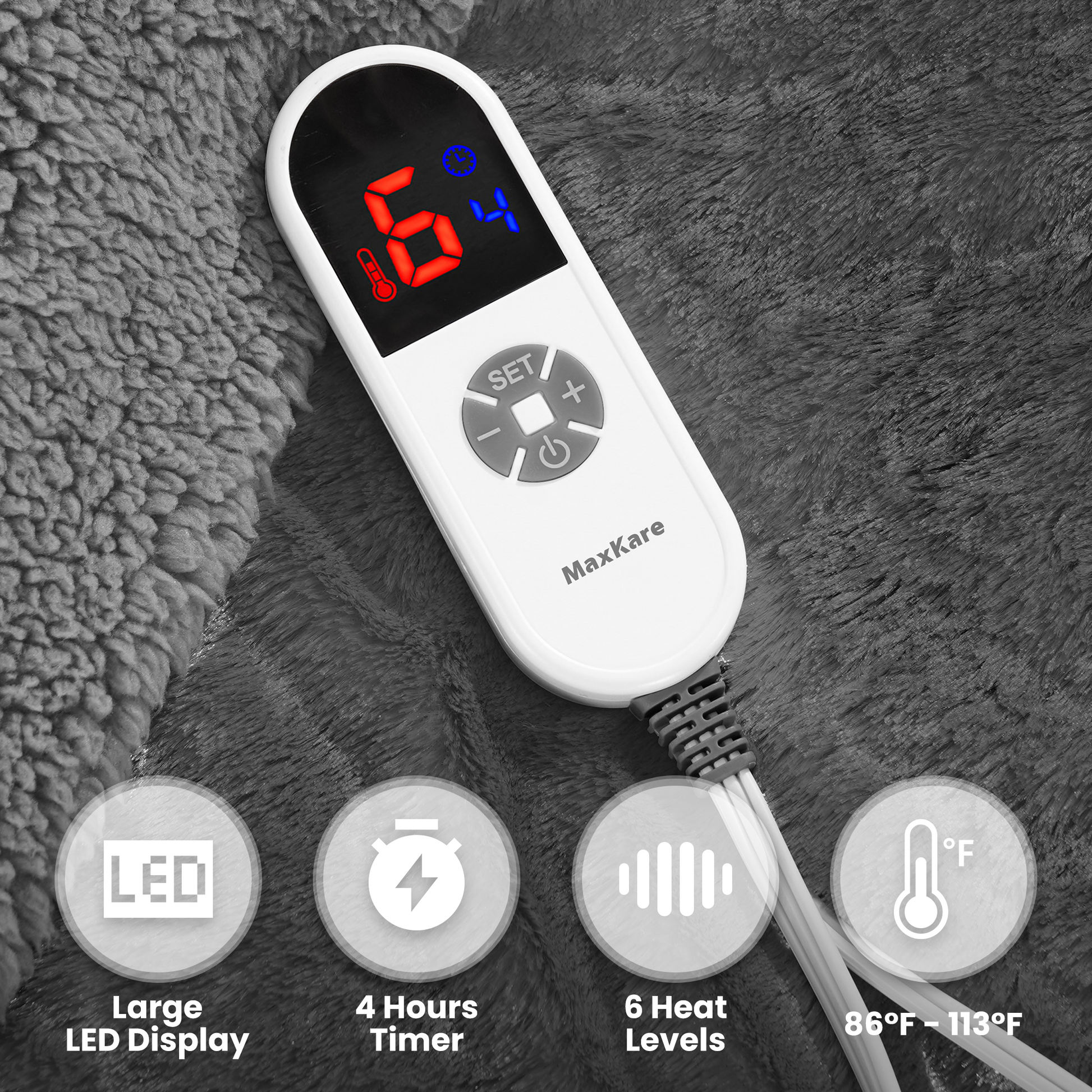 MaxKare Electric Throw Blanket 60" x 70" with 6 Heating Levels & 4 Hours Timer, Large LED Display, Soft Faux Fur & Shu Velvet - Gray