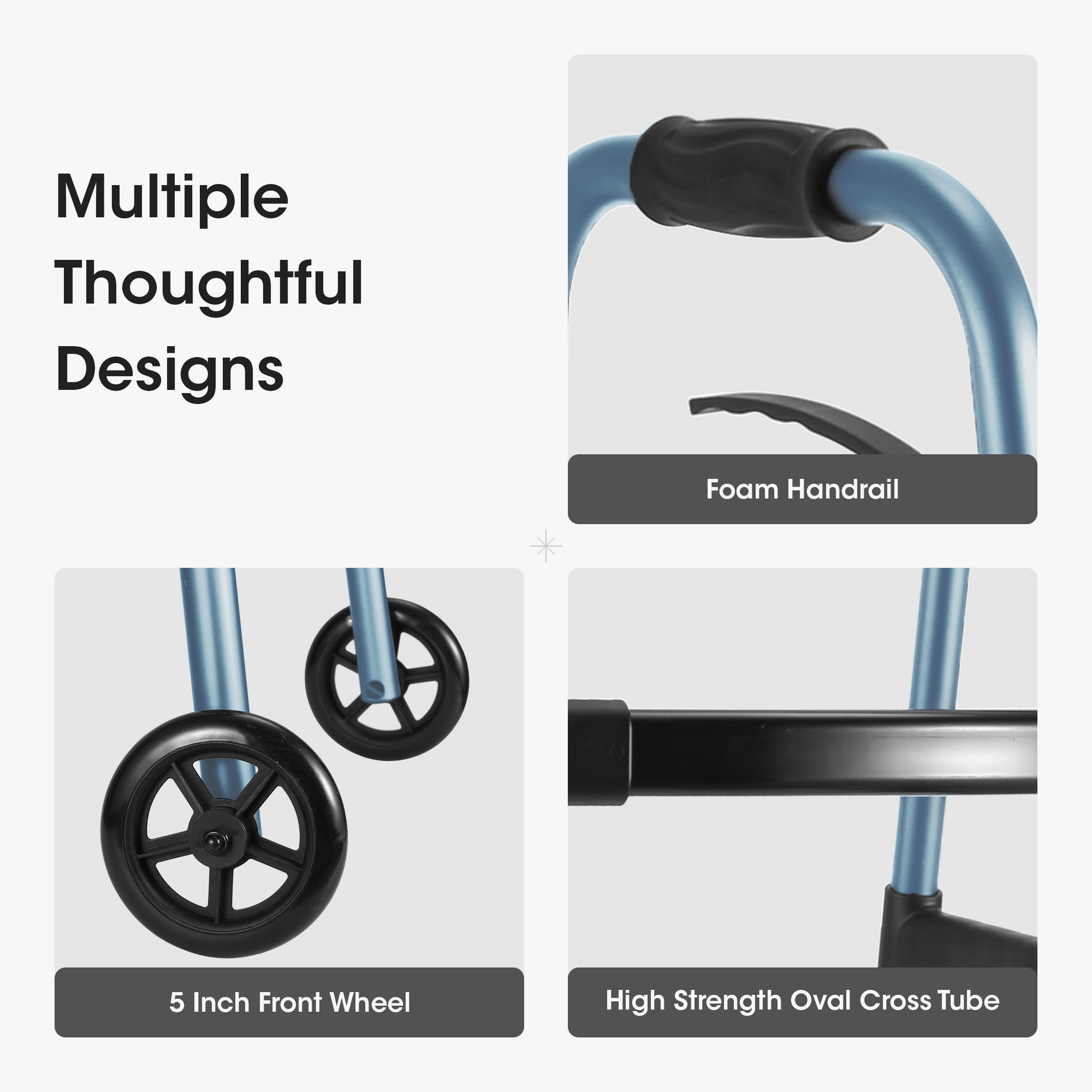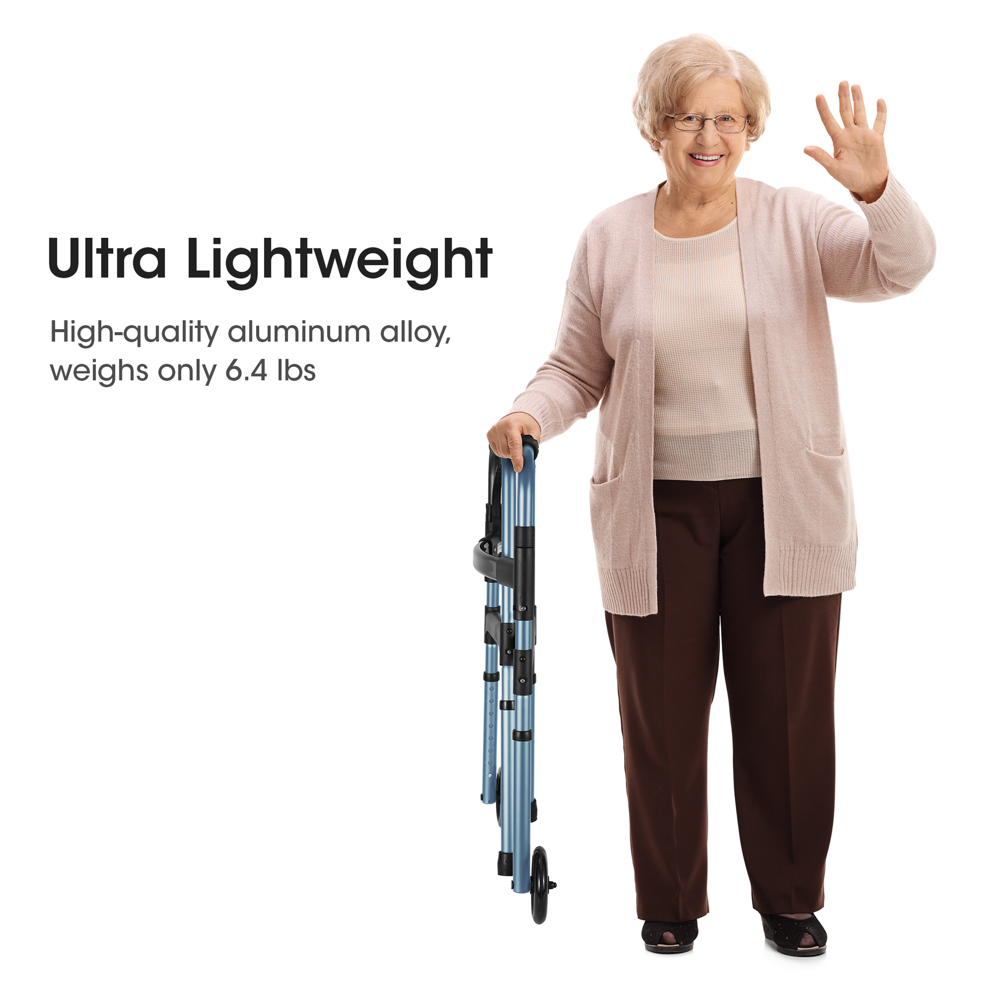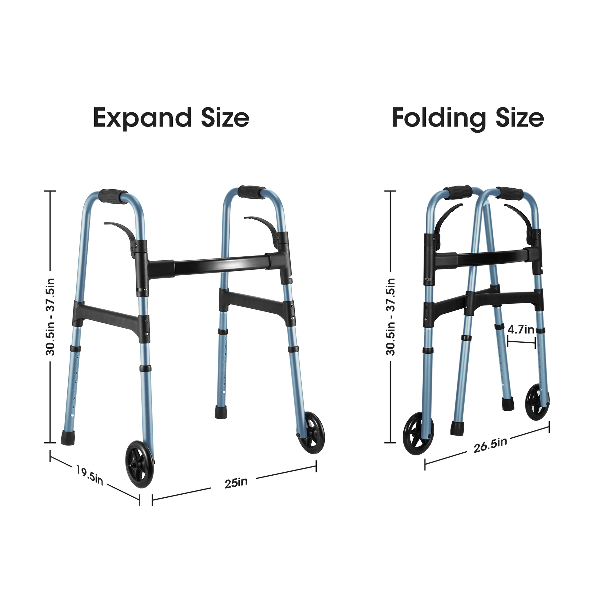 MaxKare Folding Walker with Wheels, 30.5"-37.5" Adjustable Height, 300lbs Weight Capacity, Lightweight for Senior, Blue