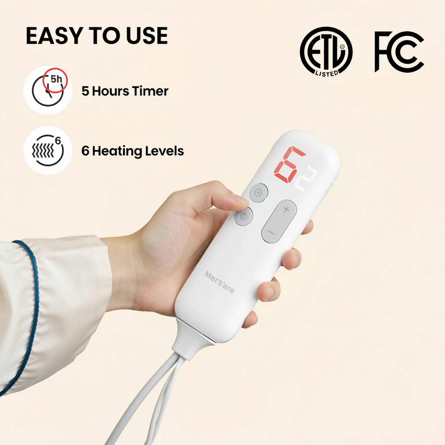 - 6 Adjustable Heat Levels, 5H Auto-Shutoff, Customized Warmth Without Waste