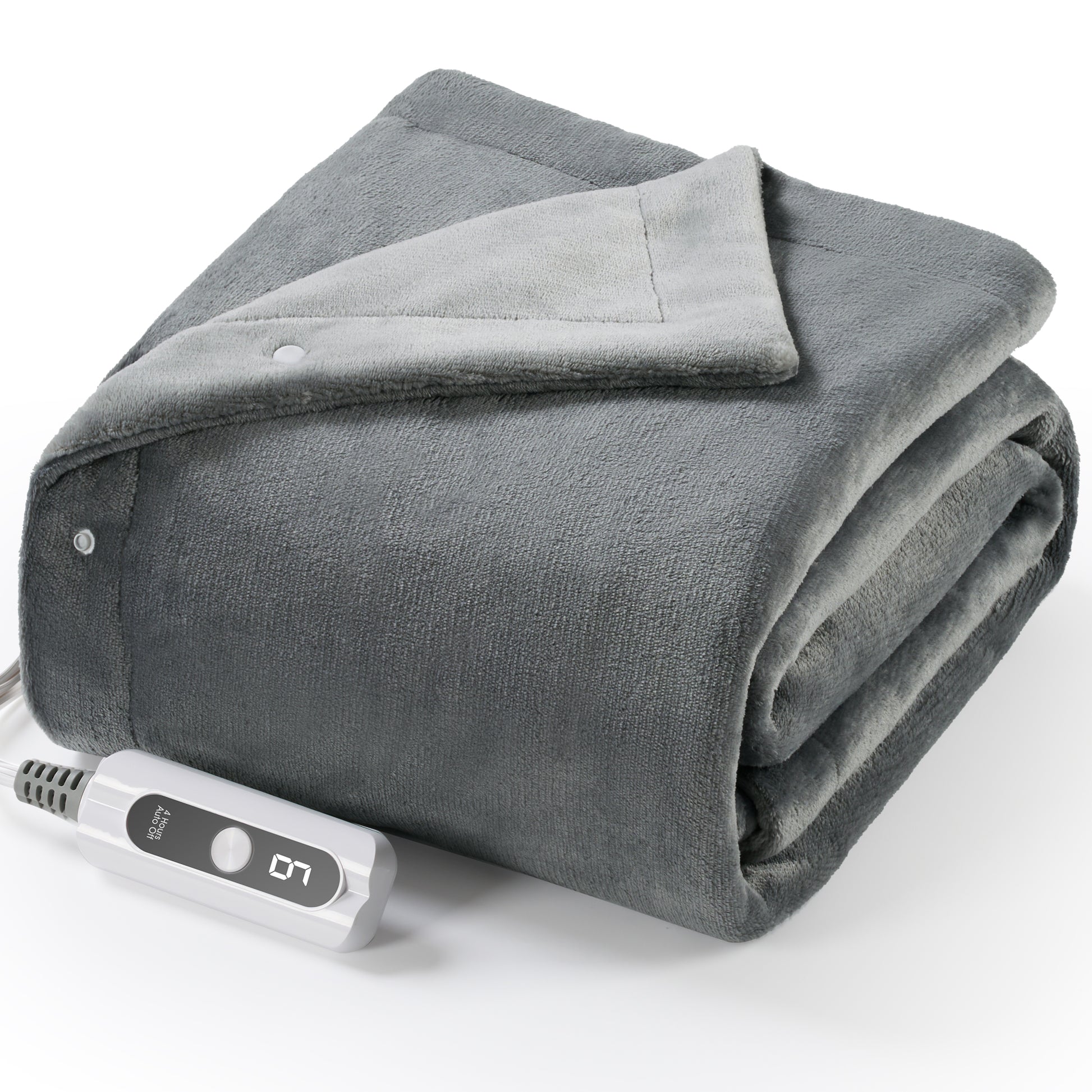 MaxKare Heated Throw Blanket 50" x72", 6 Heat Levels, 4H Auto-off, 3 Button Adjust Fix, OEKO TEX Certified, Dual Soft Flannel, Light & Dark Gray
