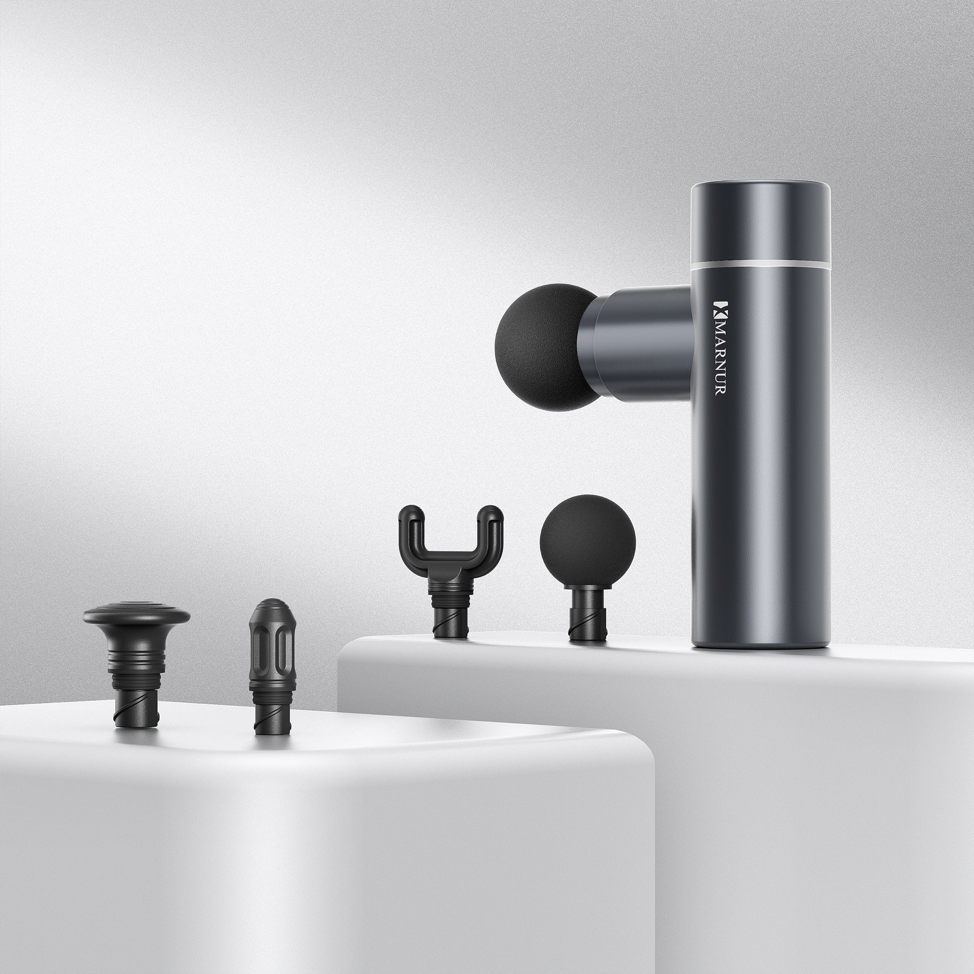 Four Interchangeable Massage Heads—This massage head comes with four specialized attachments to target different muscle groups: a ball head, a flat head, a bullet head, and a forkhead. It provides full-body relaxation.