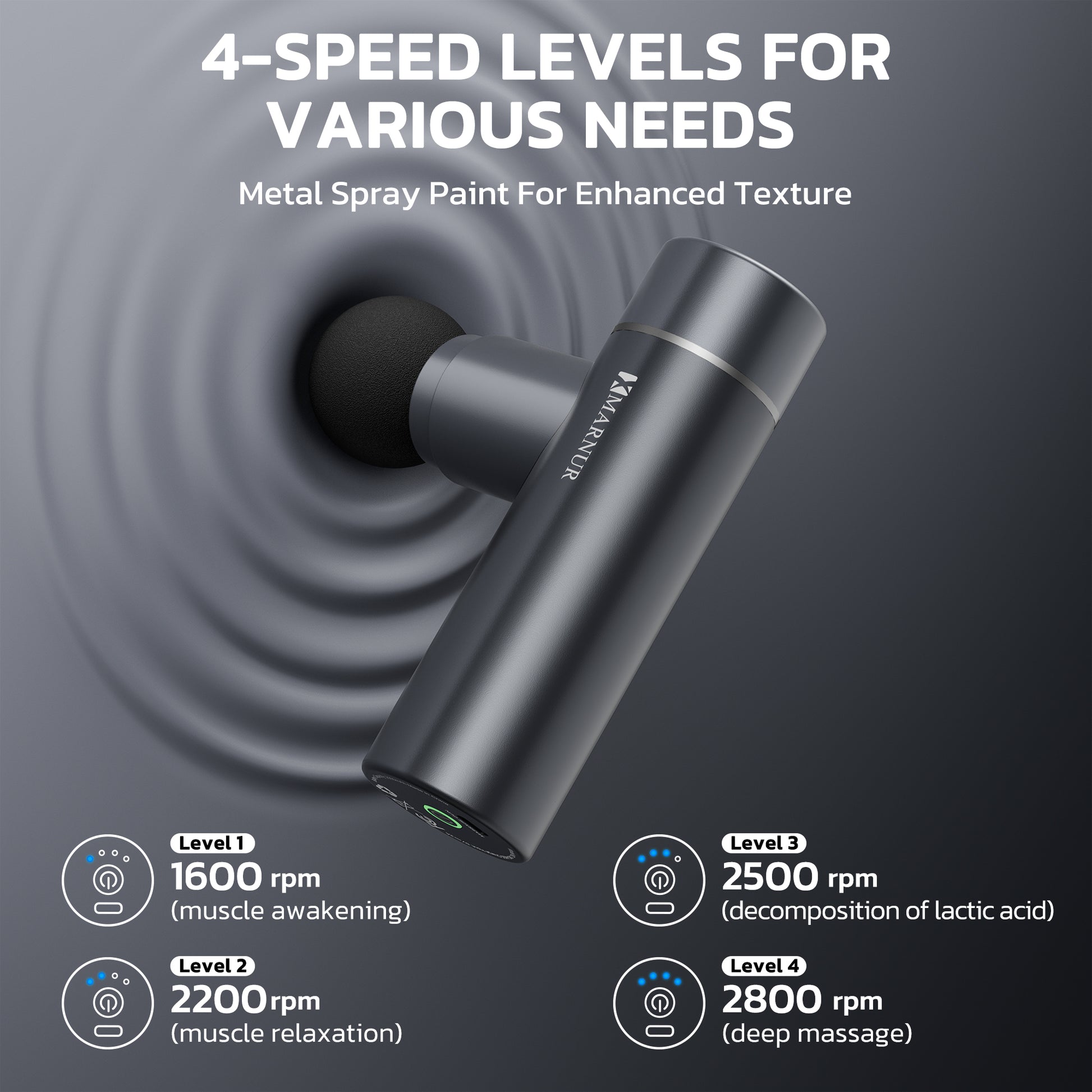 4 Adjustable Speeds – Choose from 4 intensity levels to customize your massage experience, whether you need to relax tight muscles after a workout or relieve everyday tension.
