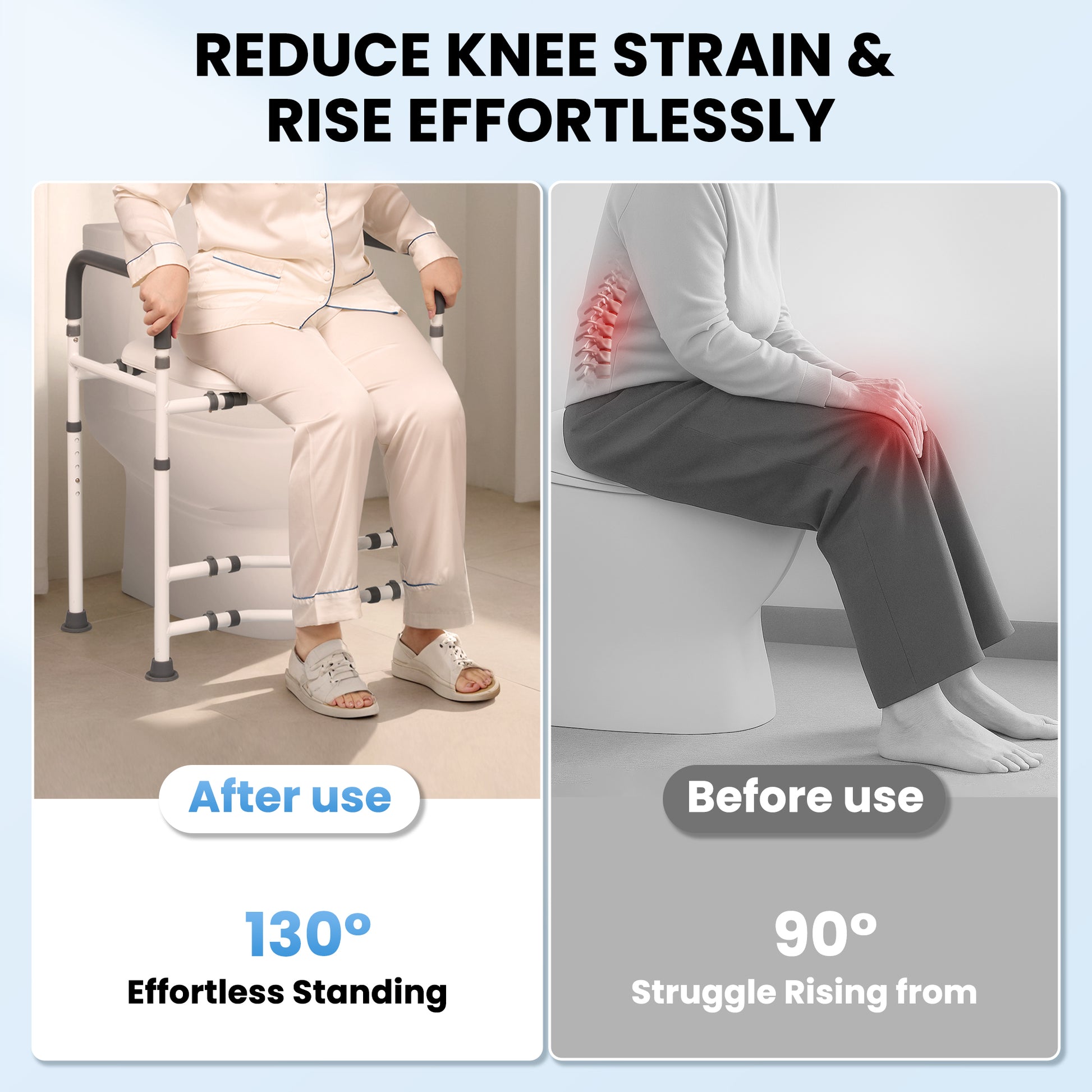 - REDUCE STRAIN & RISE EFFORTLESSLY:MaxKare Raised Toilet Seat experience pain-free transitions and regain your independence! The raised height significantly reduces strain on knees, hips and back, allowing users—especially seniors and those with mobility challenges—to sit down and stand up smoothly and independently.