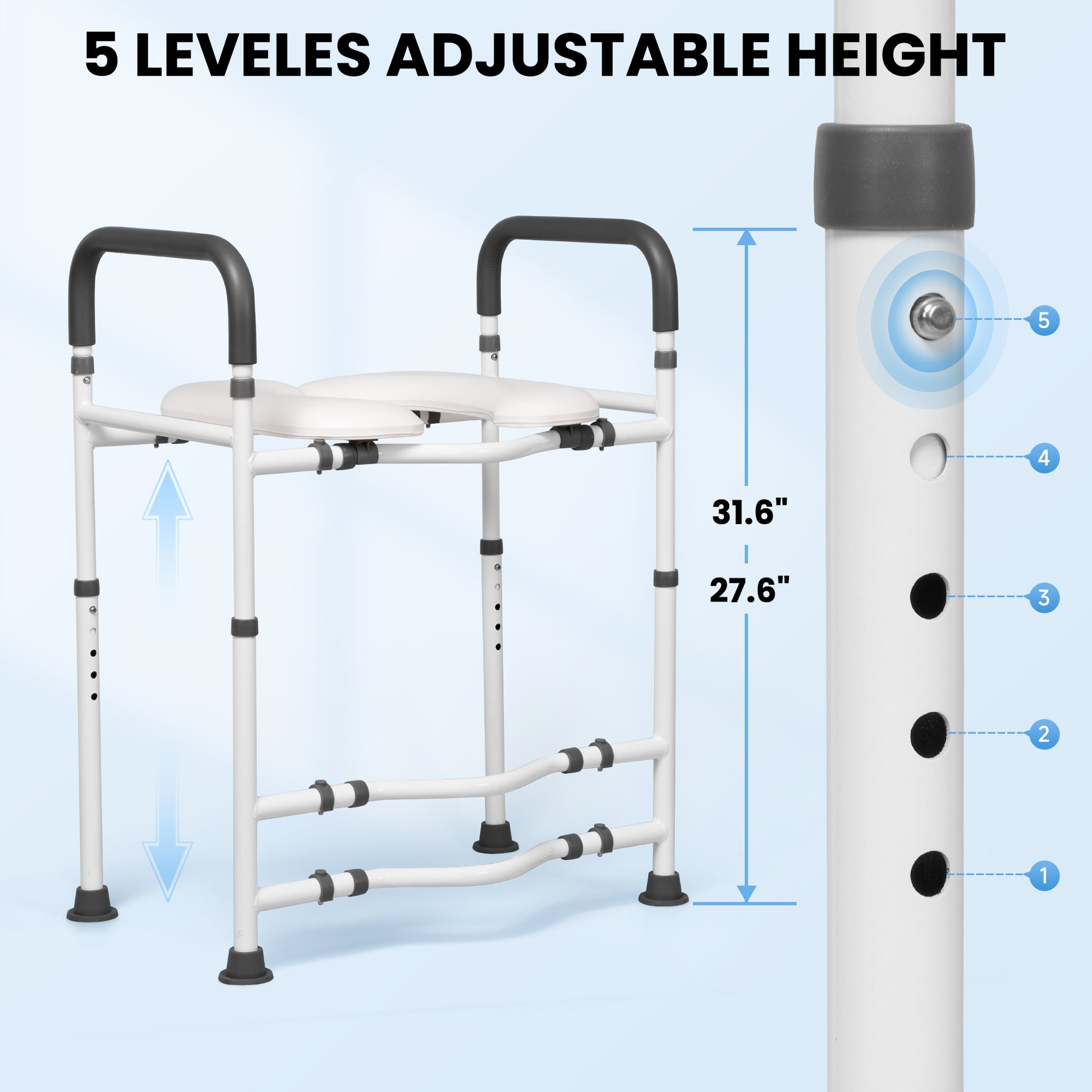 - 5 LEVELES ADJUSTABLE HEIGHT:The toilet seat riser for elderly can be adjusted in height (floor to seat) from 27.6'' to 31.6'', making it suitable for elderly, handicap, pregnant and those recovering from surgery or injury, and compatible with different toilets.