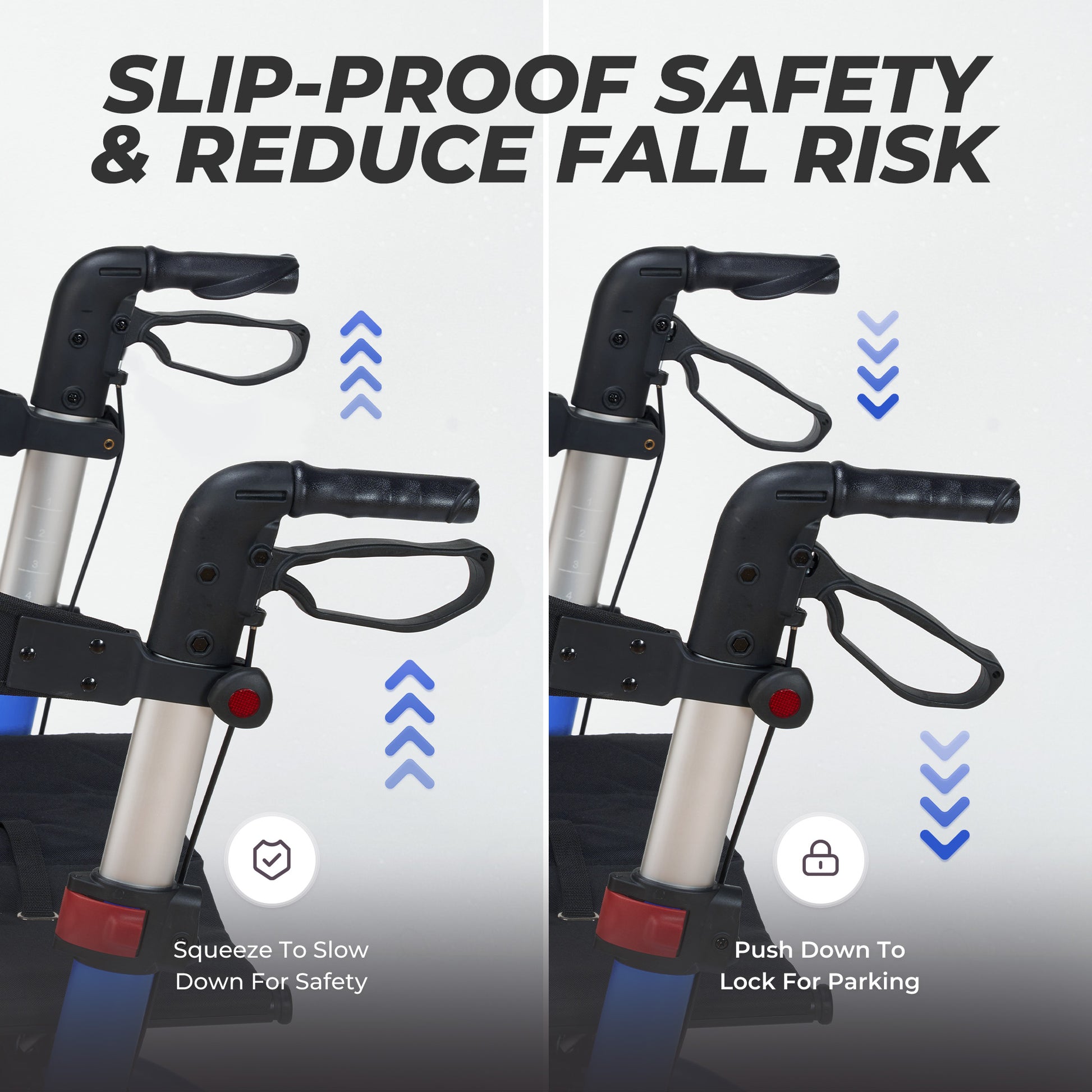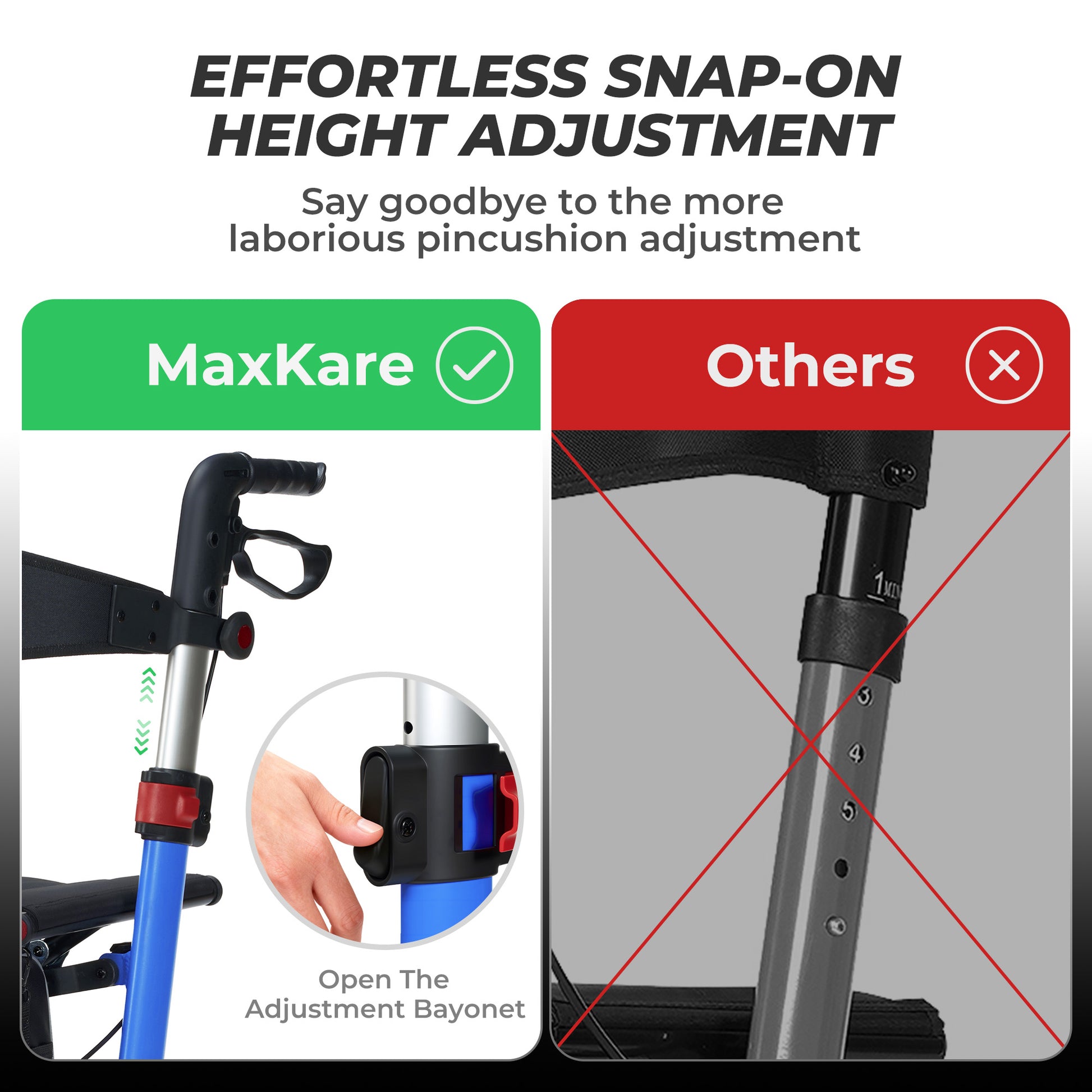 MaxKare Rollator Walker with Seat, Foldable 4 Wheel Rolling Medical Walker, Blue