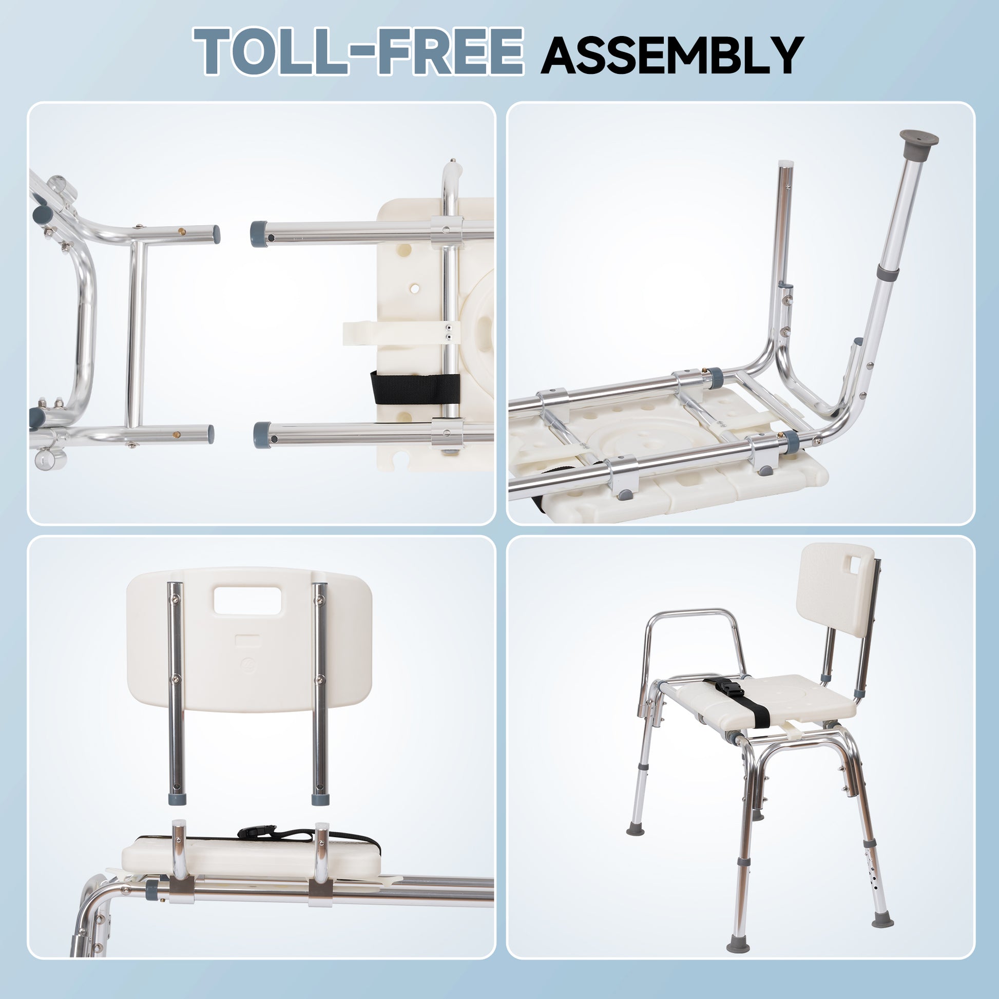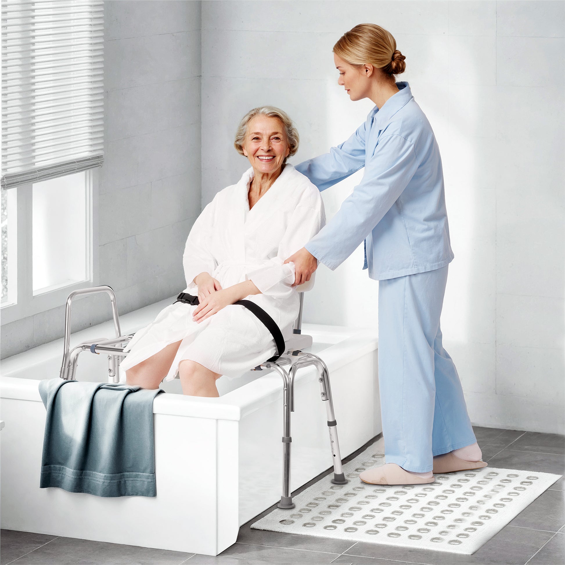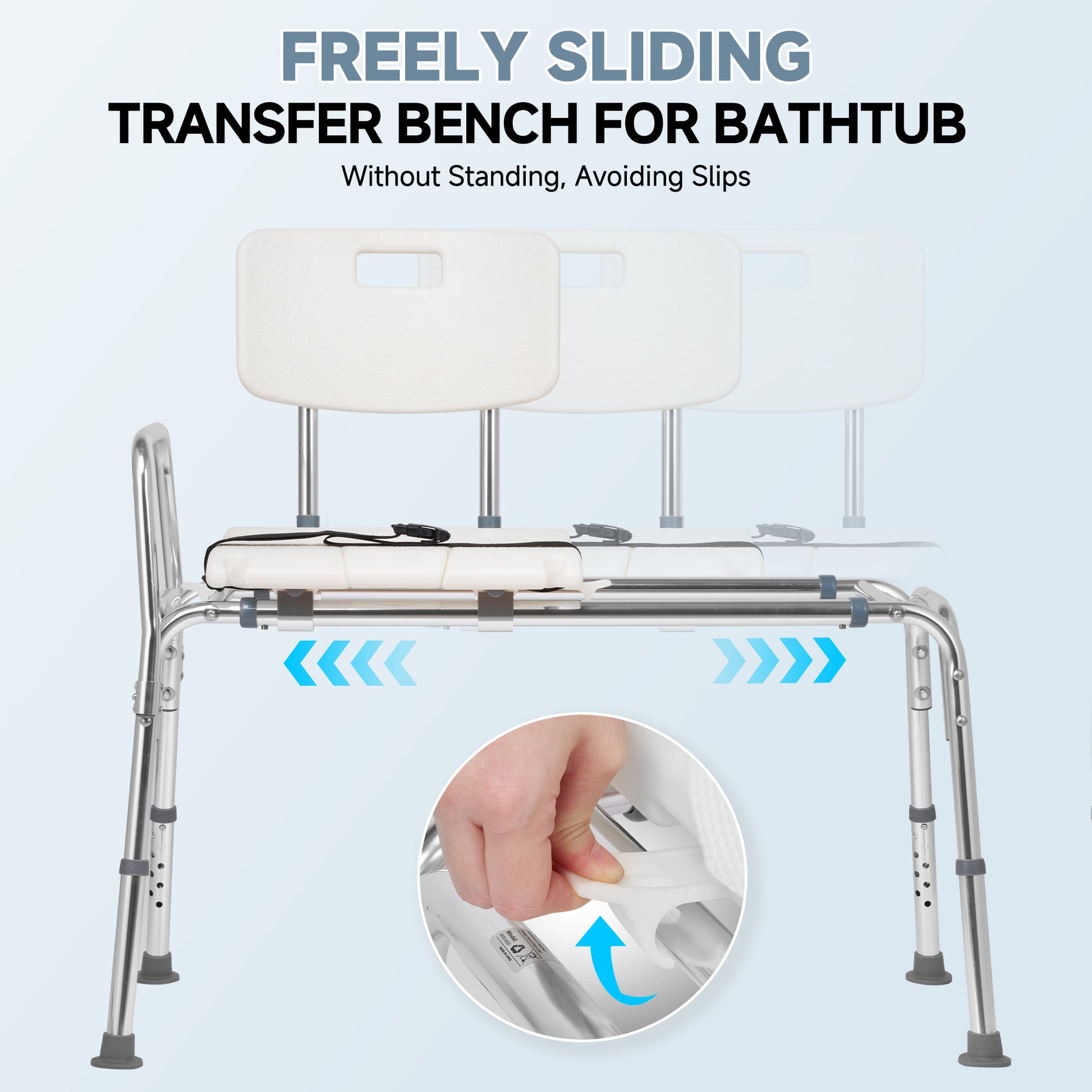 - COMFORTABLE & HYGIENIC SEAT DESIGN:Designed with a wide, ergonomic seat and a removable center cutout, this sliding transfer bench make thorough bathing easier while providing easy cleaning intimate areas. The anti-slip surface enhances safety, and built-in drainage holes help keep the seat dry and clean.